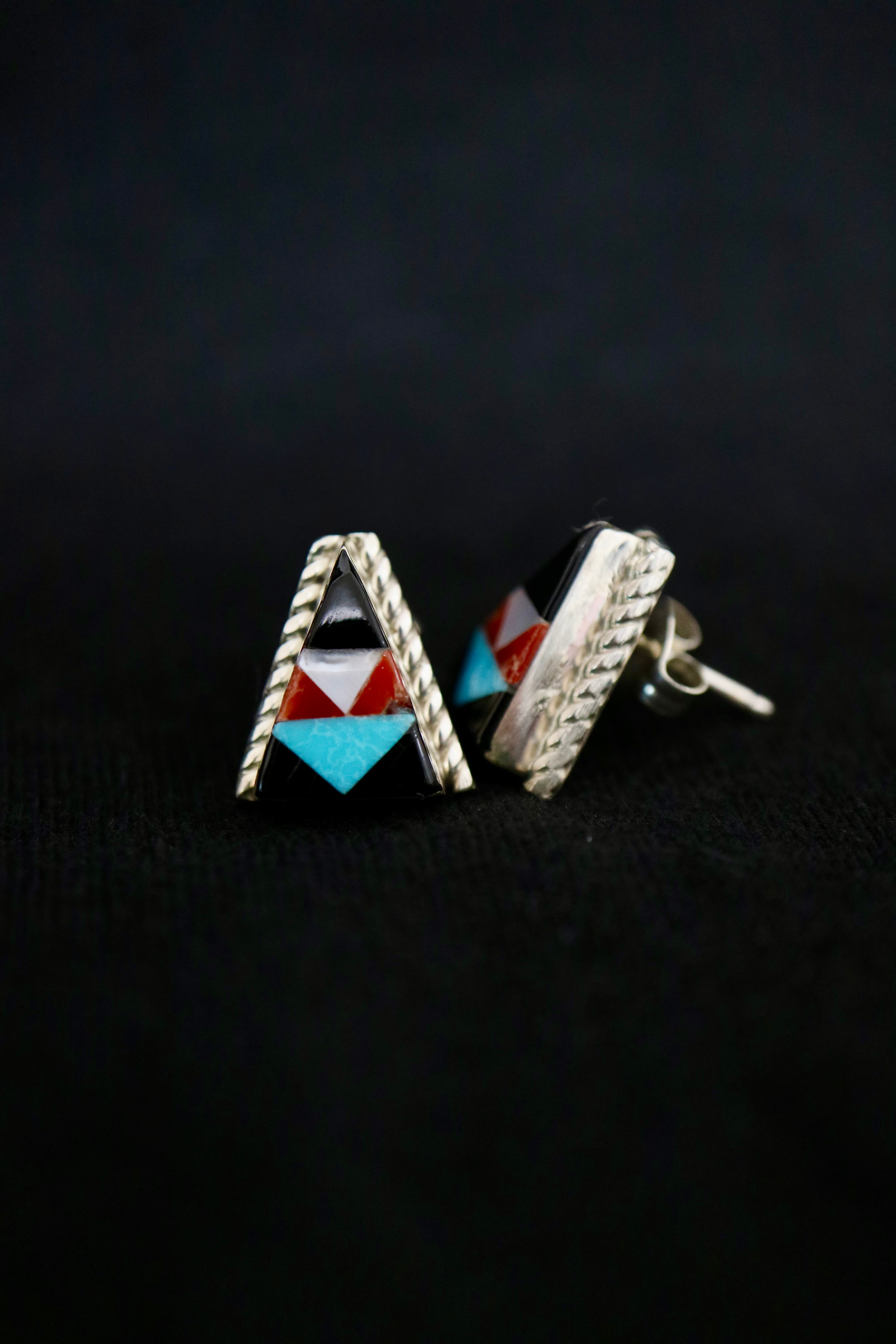 ズニ族 インレイトライアングルピアス小