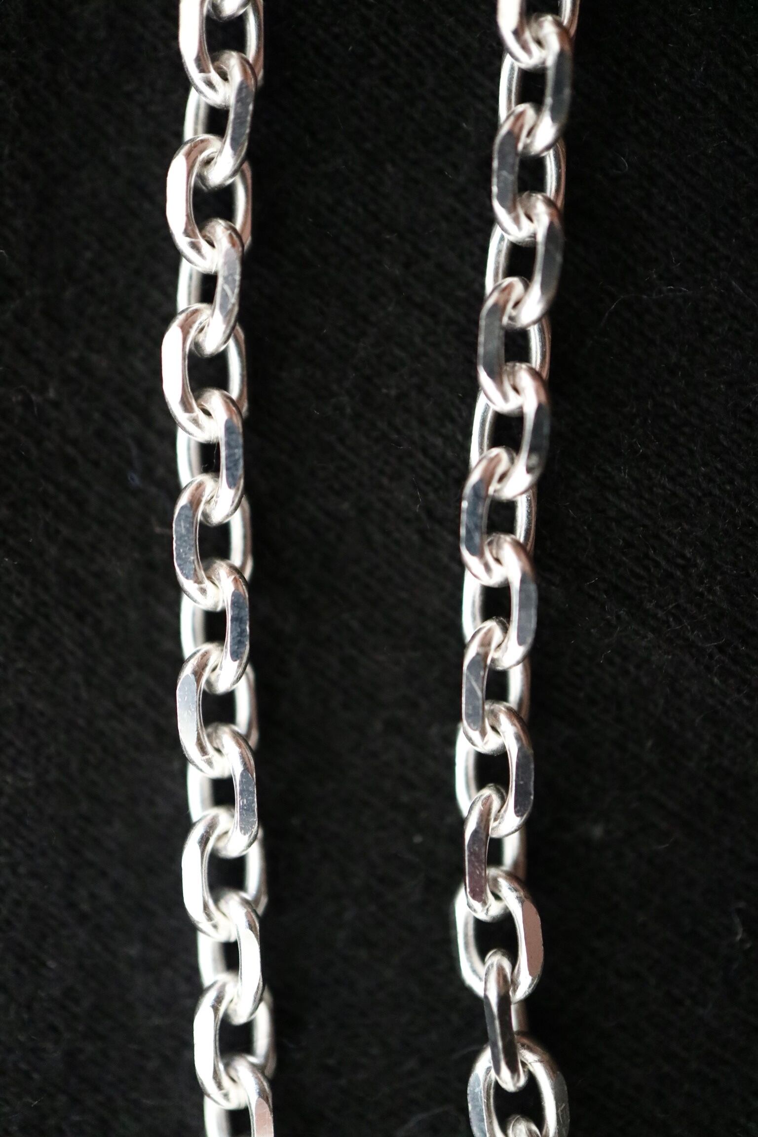 単体で身に着けてもすっきりとした印象を与え、ペンダントトップを合わせればモチーフをしっかりと支えつつ引き立てる万能なチェーンです。