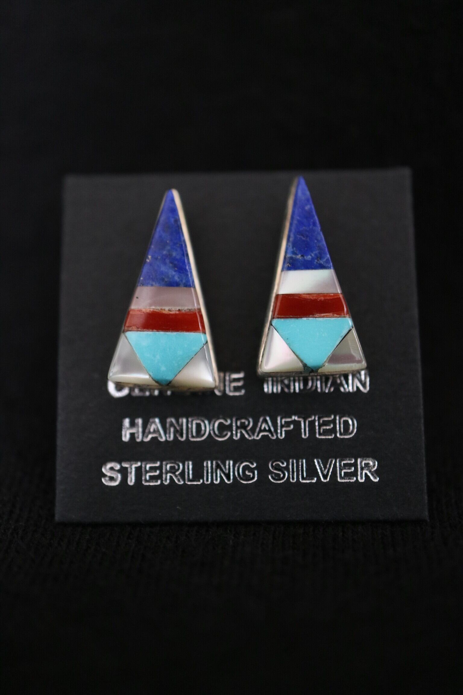 ズニ族 インレイトライアングルピアス大