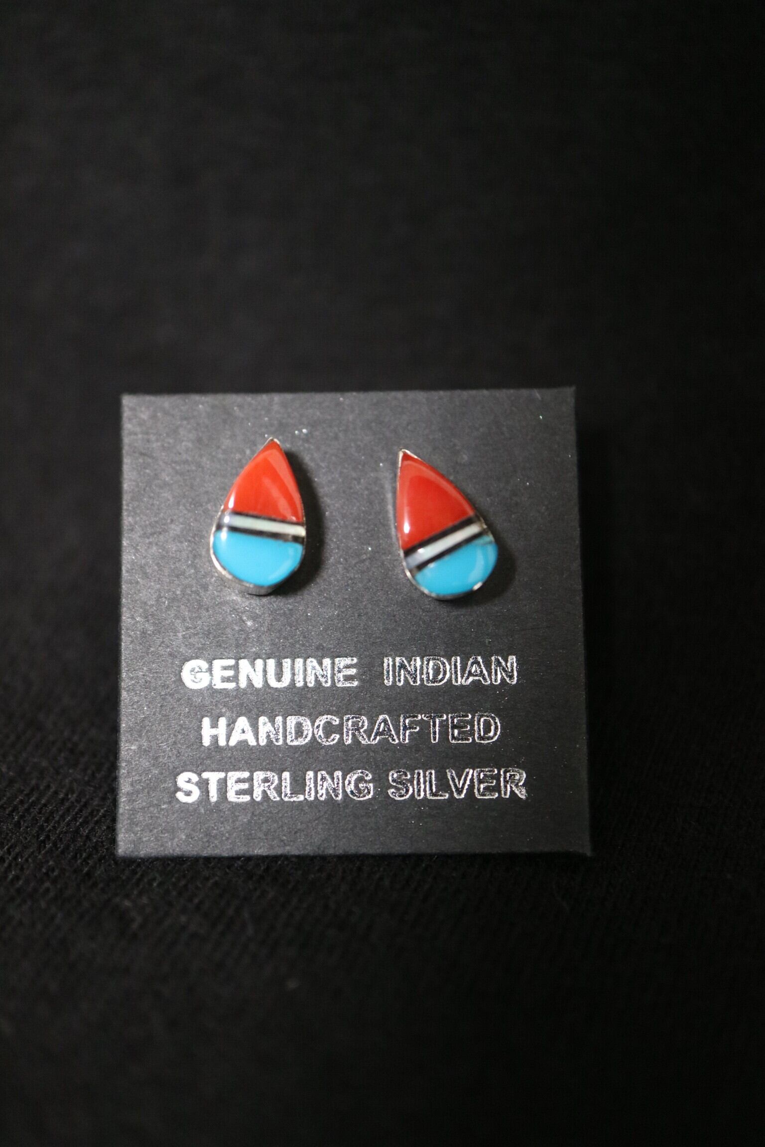 インディアンジュエリー伝統のインレイ技法(象嵌)によるハンドクラフトピアスです。