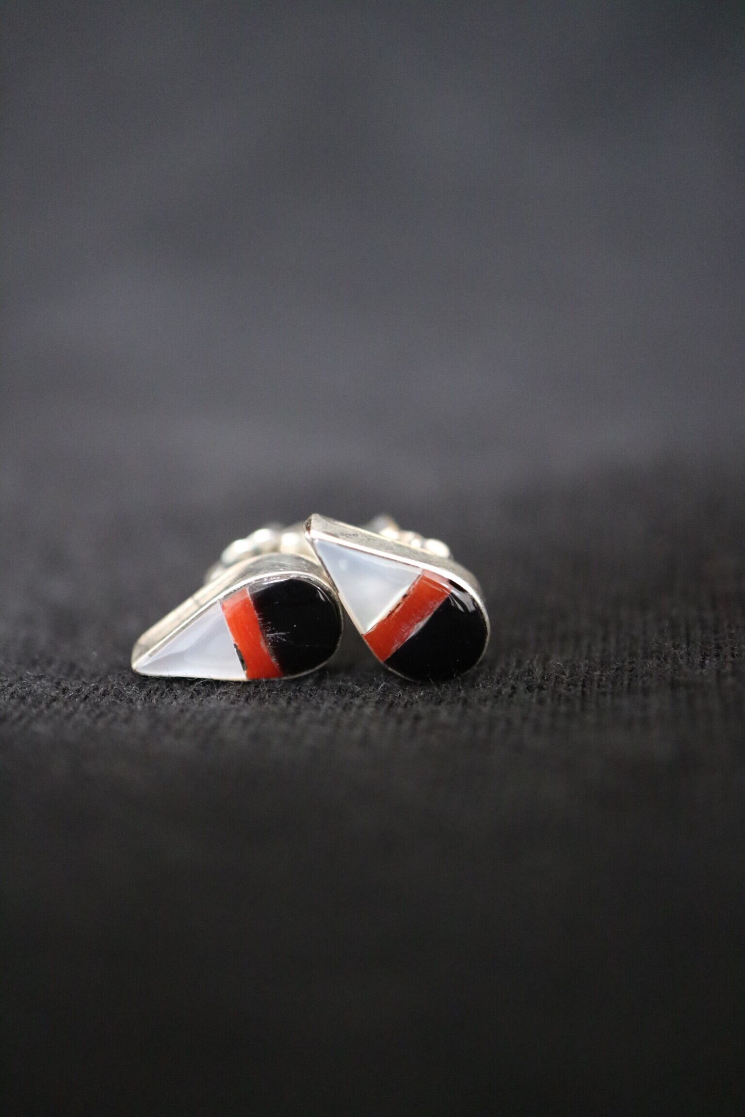インディアンジュエリーの伝統技法 インレイ(象嵌) によるハンドクラフトピアスです。