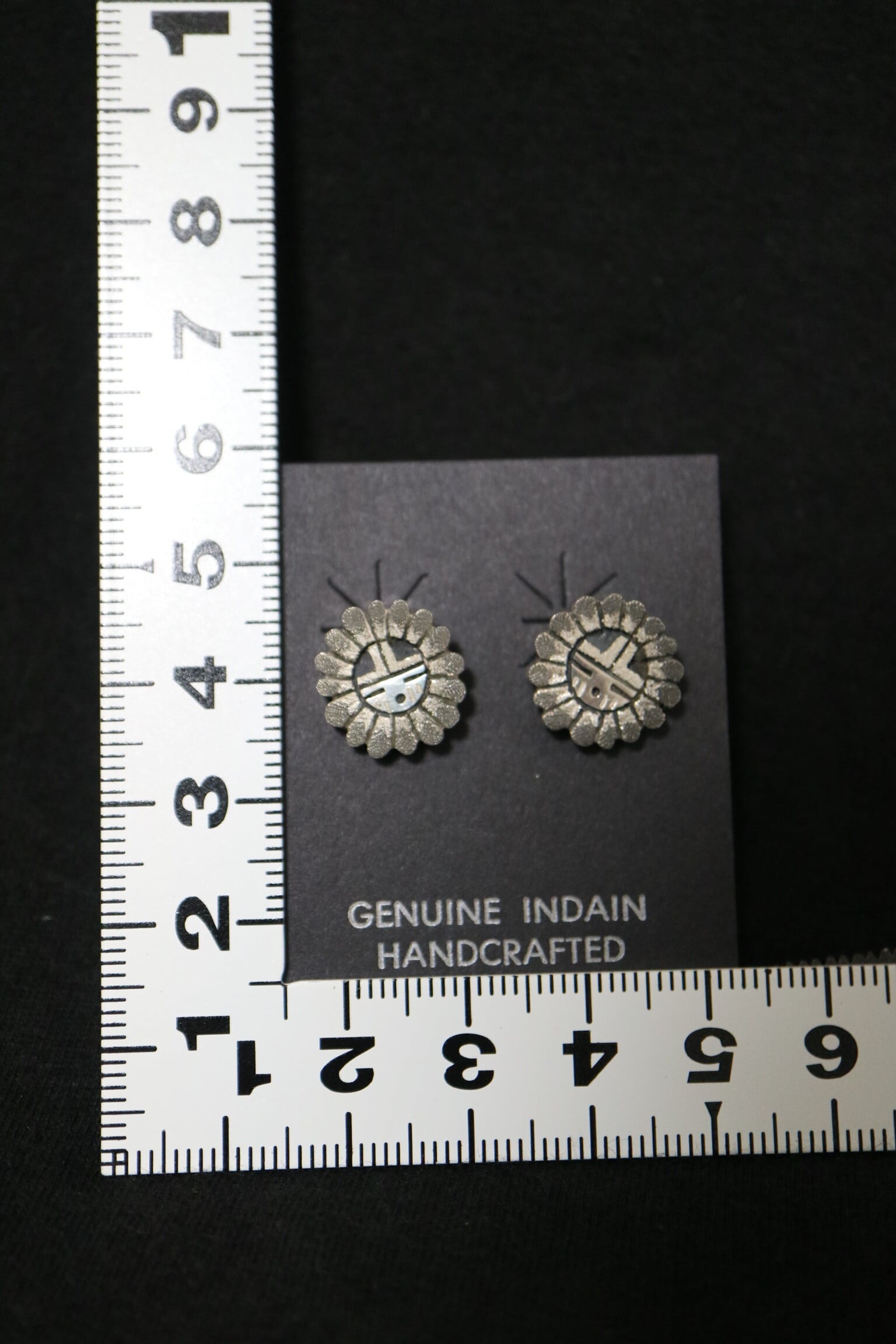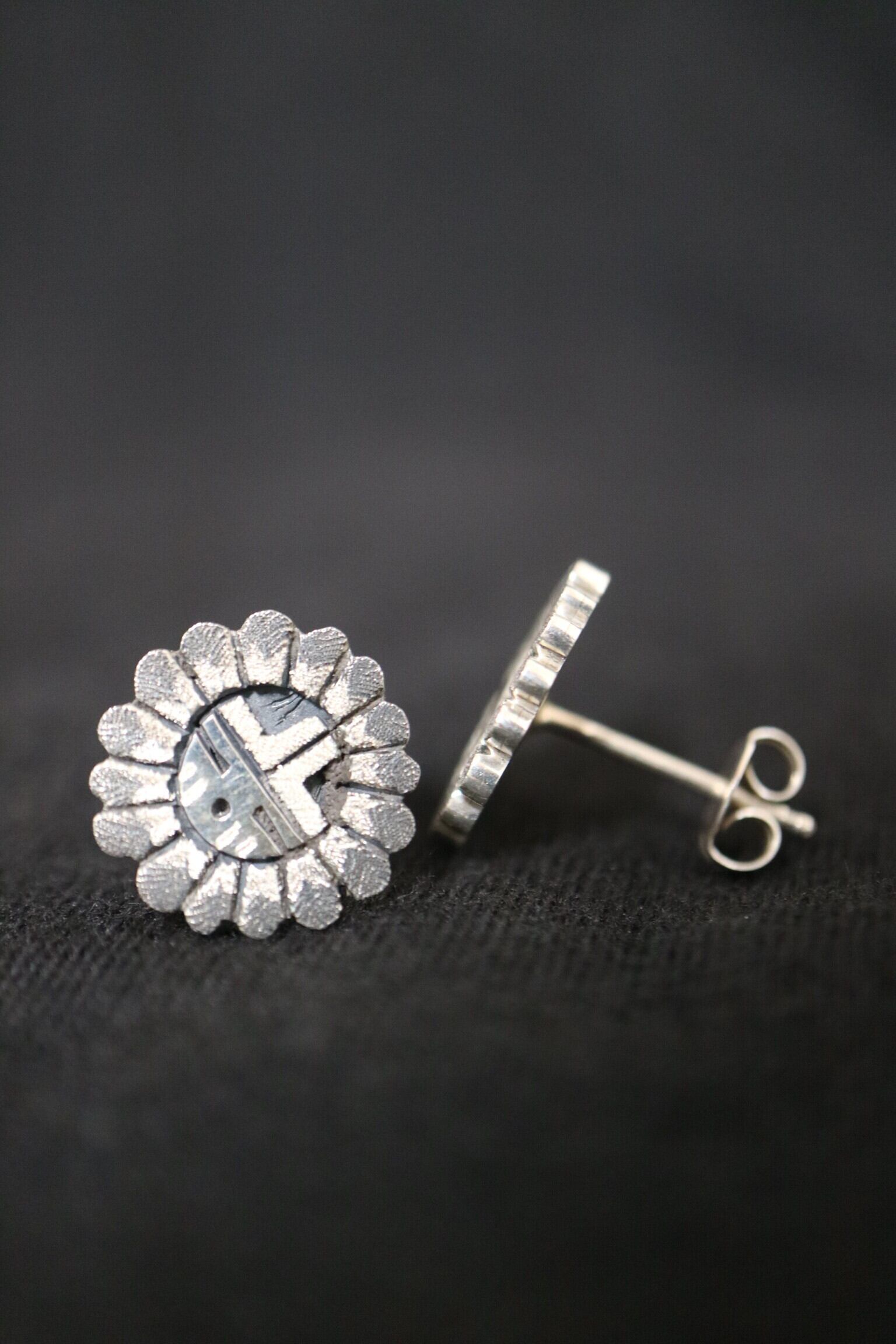 ナバホ族のシルバースミス Letchworth(レッチワース) による、サンフェイススタイルのスタンプワークピアス。