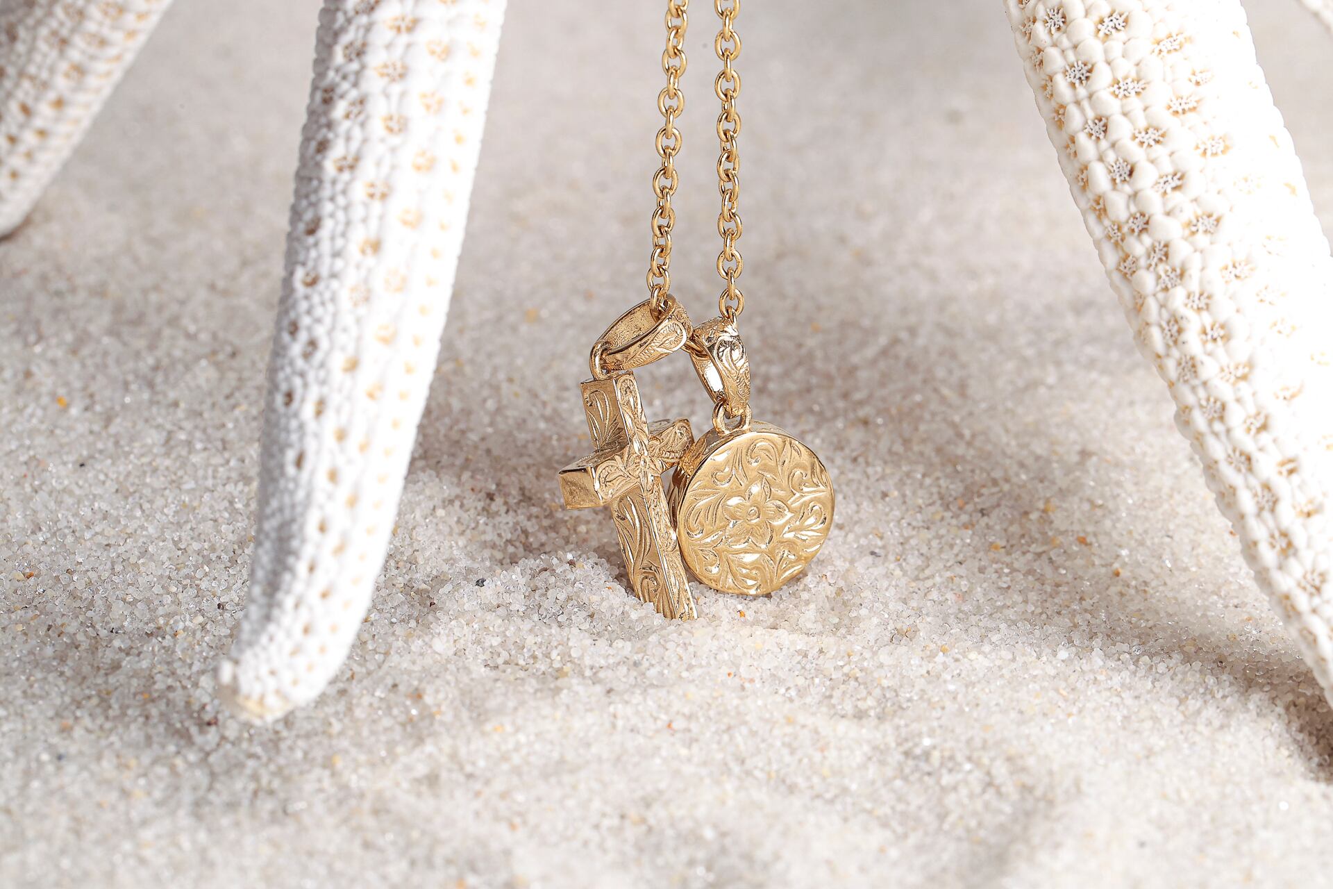 ハワイアンモチーフに込められた様々な意味をデザインに反映し、シンプルで飽きが来ず、お守りのようにいつでも身に着けていただけるデザインを創造しています。