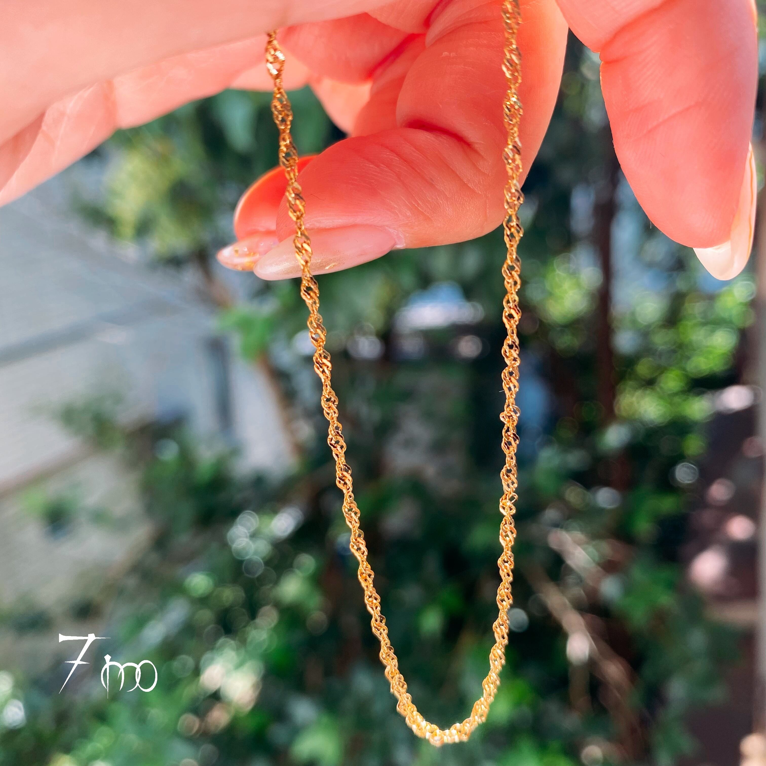 特殊な技術によって2重にネジルことによりキラキラ感が増しシンプルながら首元が一層、際立つデザインになっています。